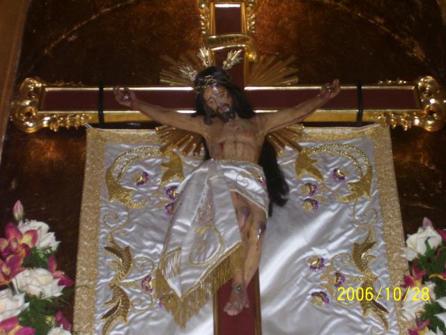 Oficialmente la cofradía quedo constituida en el año 1840, estando al frente de la diócesis, su ilustrísima don José Escolano de Fresnoy, y es en este año cuando fieles y devotos comienzan a pesarse en romana, y lar como ofrenda y exvoto la equivalencia del peso en especies a la Cofradía, para así contribuir a los gastos que ésta tiene a lo largo del año, ya que también ayuda a emigrantes y menesterosos. Los “pesos”, como se llama a esta ofrenda, tiene lugar el día de la fiesta, cuando la imagen del Crucificado es traslada en solemne procesión desde la ermita a la iglesia, donde permanece los días que ésta dura, siendo llevado otra vez a la ermita, donde permanece el resto del año, ya que en muy contadas ocasiones y por circunstancias muy especiales sale de ella.